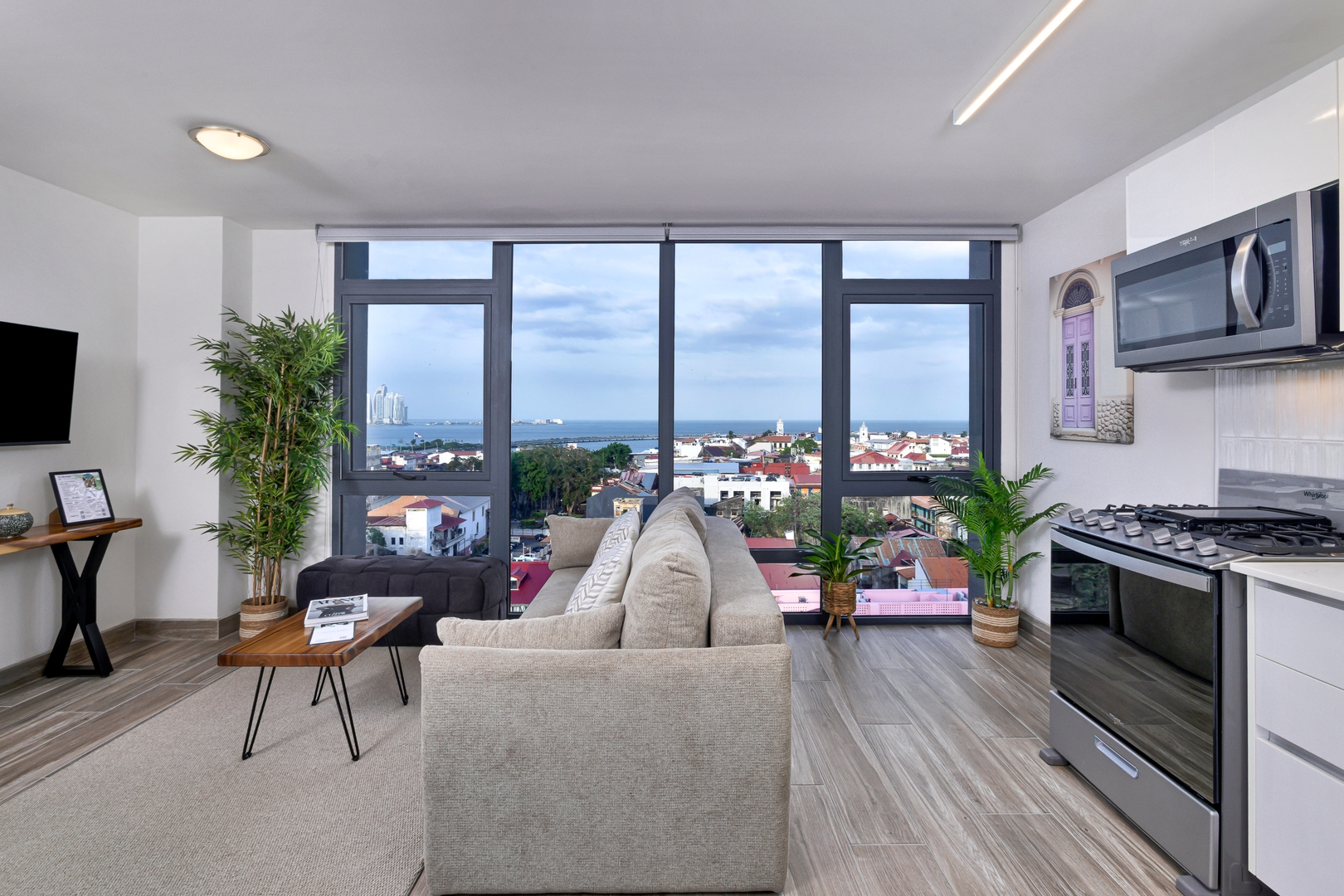 Experience Panama City from Casco View Life, a collection of boutique serviced apartments located in Santa Ana, the Creative District and vibrant extension of Casco Viejo, a UNESCO World Heritage Site. Enjoy modern, fully equipped apartments with full kitchens, in-unit laundry, fast WiFi, and premium design. With a saltwater pool, coworking lounge, garden terrace, Concierge service, and 24/7 security, this is the perfect space for short or extended stays.