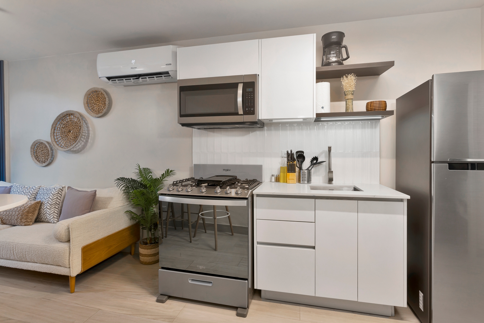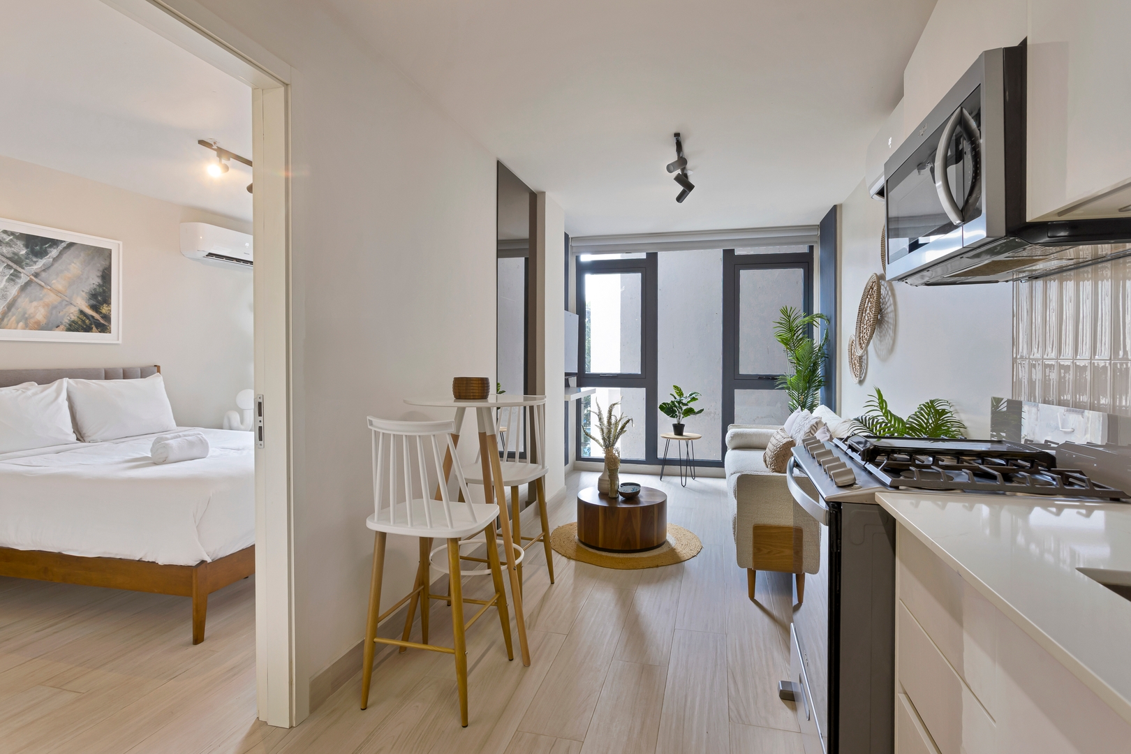 Stay in a bright, spacious, professionally designed apartment with: